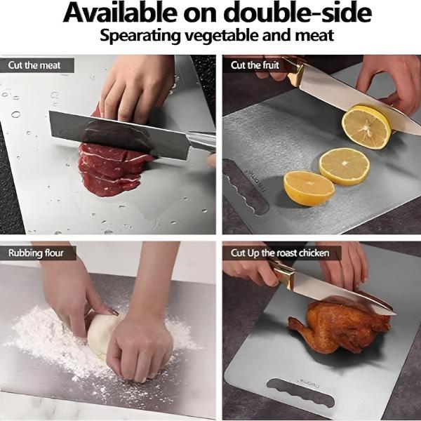 Tradicionalne deske za rezanje lahko zadržujejo škodljive kemikalije, kot so BPA in ftalati, ki prehajajo v hrano. VITABOARD je izdelana iz čistega nerjavečega jekla, kar popolnoma odpravlja ta tveganja. Zagotovite svoji družini brezskrbnost pri vsakem obroku.