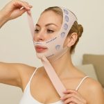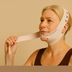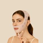 Nežna kompresija usmerjena navzgor pomaga zmanjšati zabuhlost in definirati čeljustno linijo.